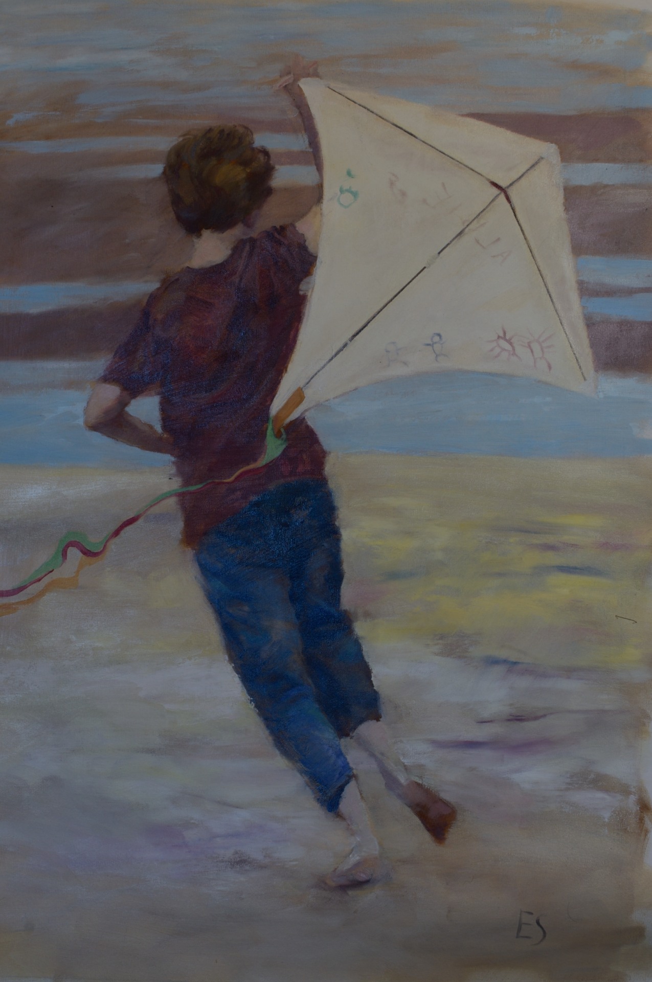 Boy with Kite, 91cm x 61cm, Oil on Canvas